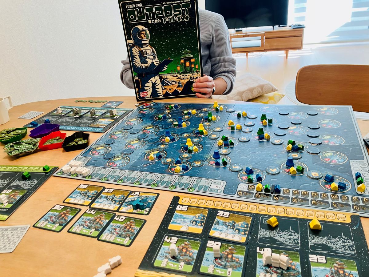 電力会社は、燃料市場の読み合いが濃く、古典的でガッツリ重めのユーロ寄りゲームだが、アウトポストは「要素」は増えているが、燃料管理がなくなったぶん処理はすっきりしており、「洗練されて遊びやすい」「毎回展開が変わる」のが売り。