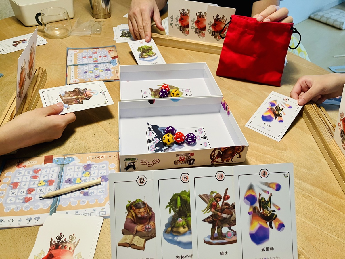 ルールを聞いてワクワクした気持ちで遊び始めたけど、本当にどうしようもない程にゆづとカードがかぶり…ダイスはとれないわ、新しいカードを獲得できないからまた被るわで、がっかりの初プレイでした。
