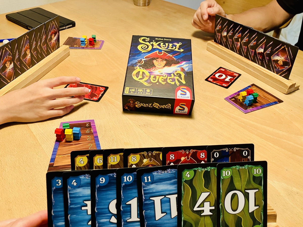 今日ご紹介するボードゲームは、名作「スカルキング」の姉妹作「スカルクイーン」というトリックテイキングカードゲームです。